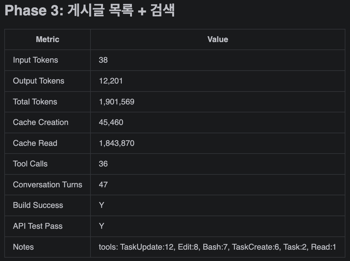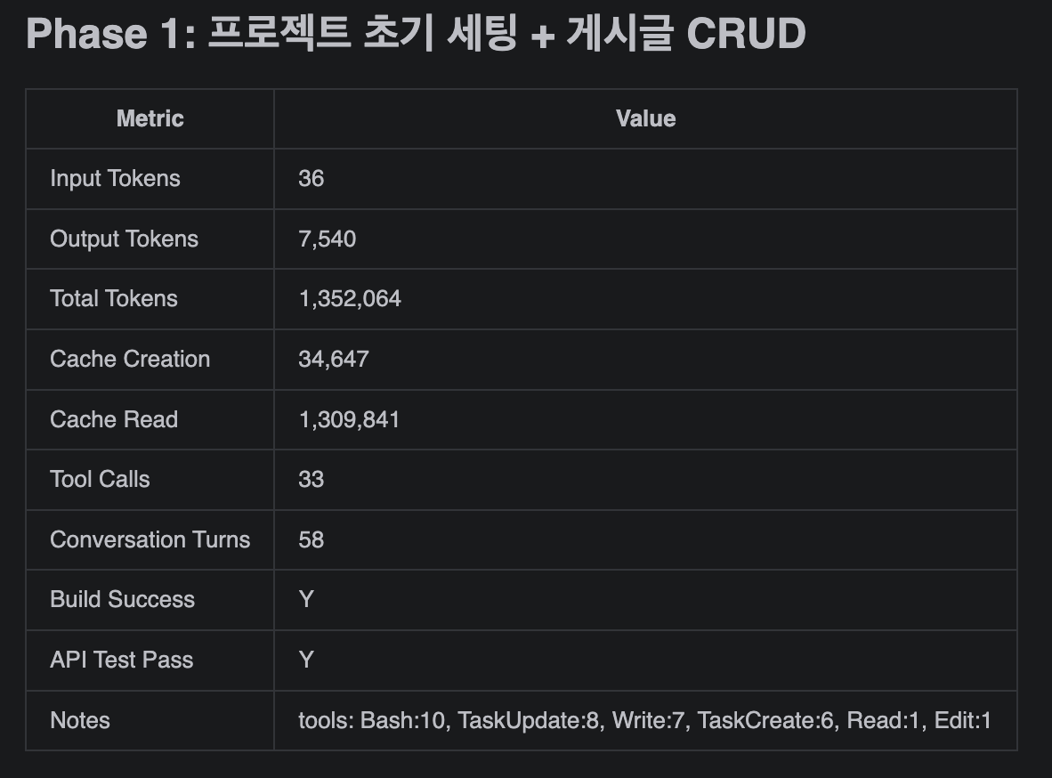 1. 정확성: 둘 다 Build Success, API Test Pass가 Y입니다. 토큰을 더 썼다고 더 정확한 건 아닐수도 있습니다.