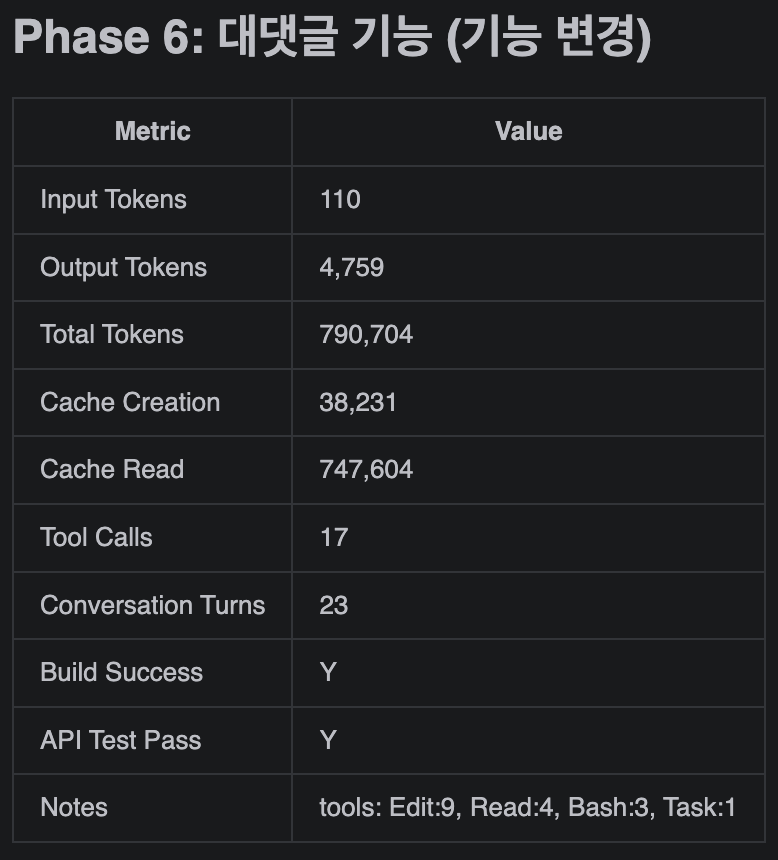 그러나 Phase 2, 6처럼 기존 코드 수정이 필요한 경우, Clean은 여러 파일을 수정하면서 각각 생성해야 하고, Messy는 적은 파일을  수정하므로 생성량도 적다는 것을 유추할 수 있습니다.